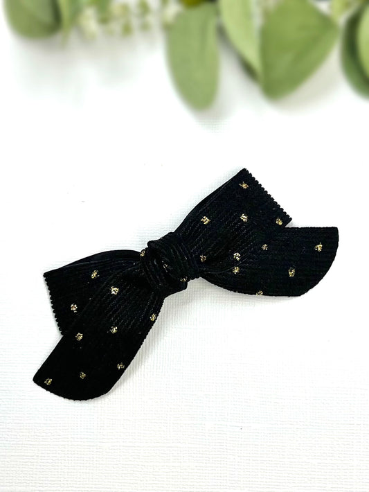 Timeless elegance meets a touch of sparkle! ✨🎀 These classic corduroy bows with golden dots are the perfect finishing touch for any outfit.