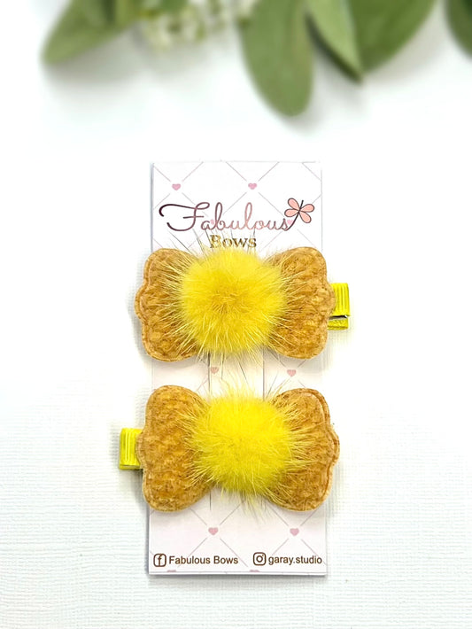 Soft, sparkly, and oh-so-cute! ✨🎀 These fluffy bow clips are perfect for adding a playful touch to any outfit.