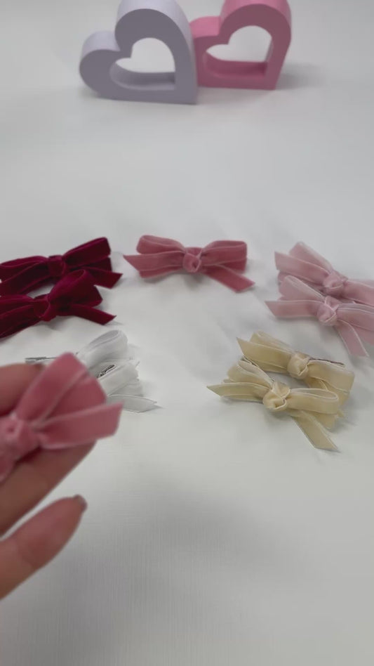 Velvet Hair Clips – Set of 2 | Nonslip Baby & Toddler Hair Bows | Soft Handmade Bow Clips | Velvet hair bows